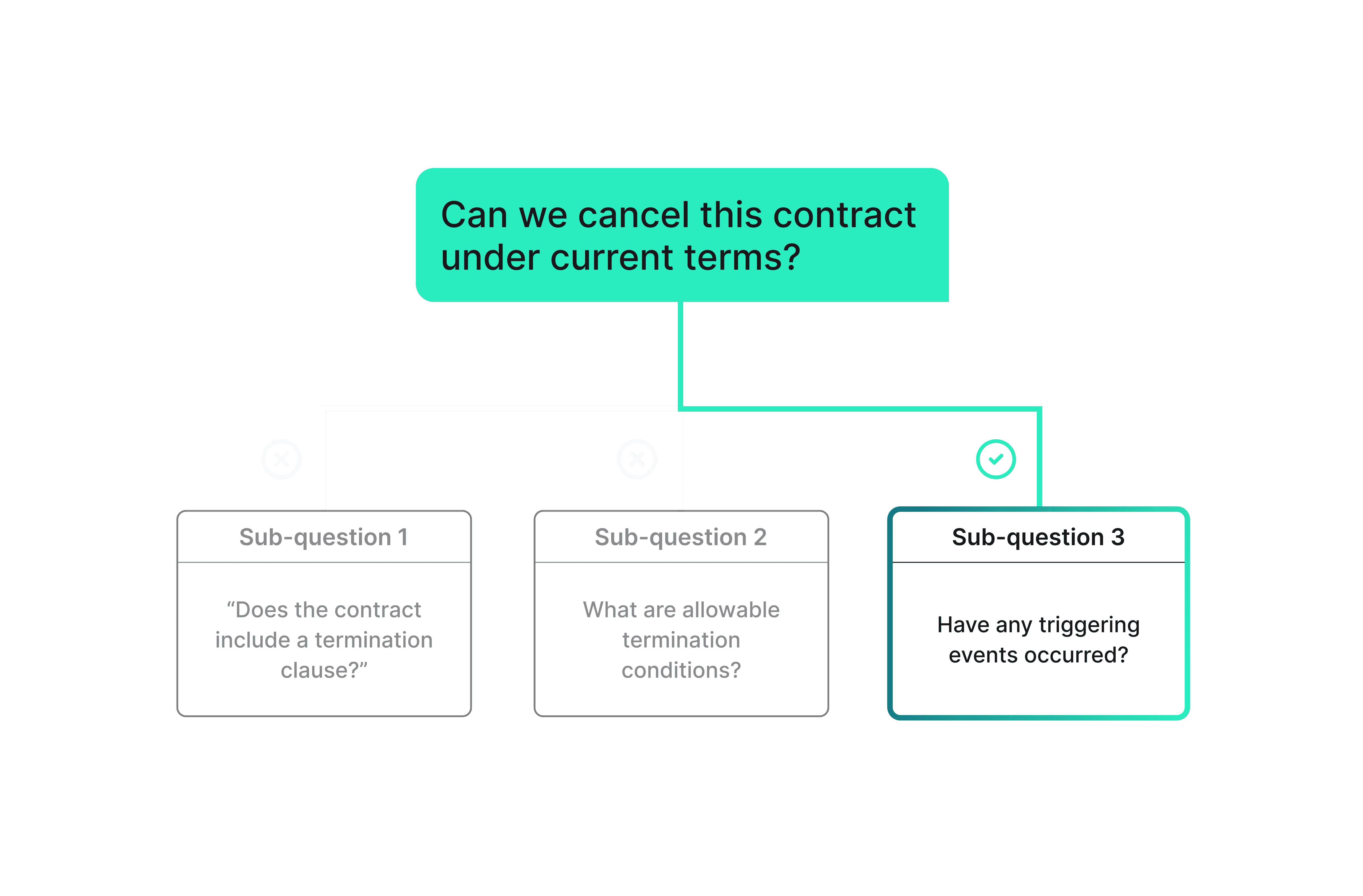 It breaks complex questions into logical steps, pulls from trusted sources, and knows when not to answer—delivering grounded, defensible insights that reduce risk and avoid hallucinations.